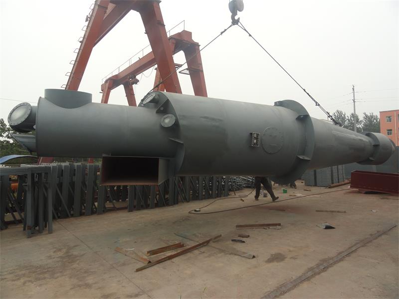 我公司生产的细粉分离器,有上部内圆筒体、中部外圆筒体及下部圆锥体三部分组成。上中筒体上部设有防爆门。气粉混合物入口管上升角分15°和24°两种,后者适用于挥发水份较高的煤种,这种分离器效率可达90%~95%,阻力系数2.3~2.5(其上限值为24°上升角时用)。下部圆锥体的上端设有支撑座,以供电站设计安装连接支撑架。